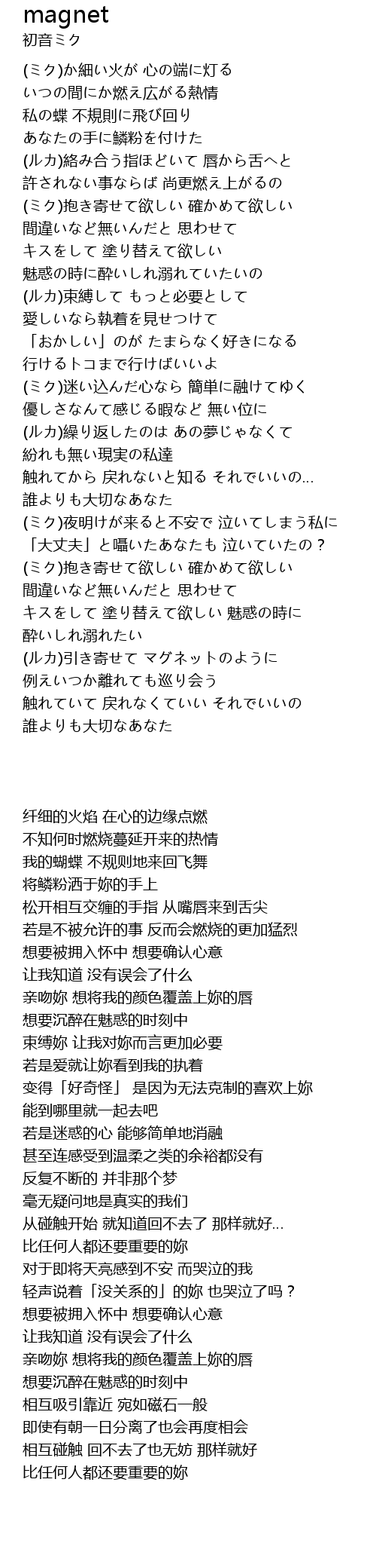 | [03:52.900] | 相互吸引靠近 宛如磁石一般 |