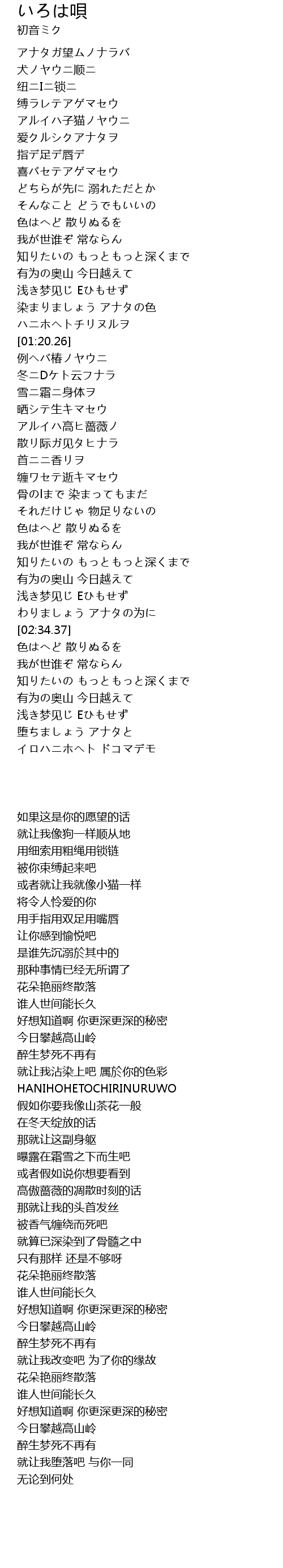 | [01:13.61] | ハニホヘトチリヌルヲ |