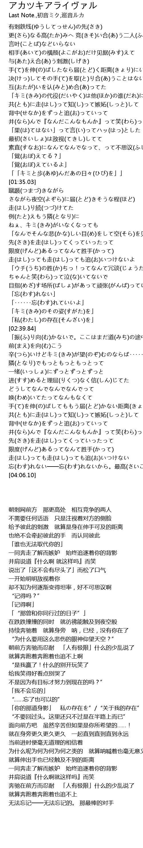 | [03:53.81] | 忘(わす)れない───忘(わす)れないから。最高(さいこう)のライバル(らいばる/rival)を |