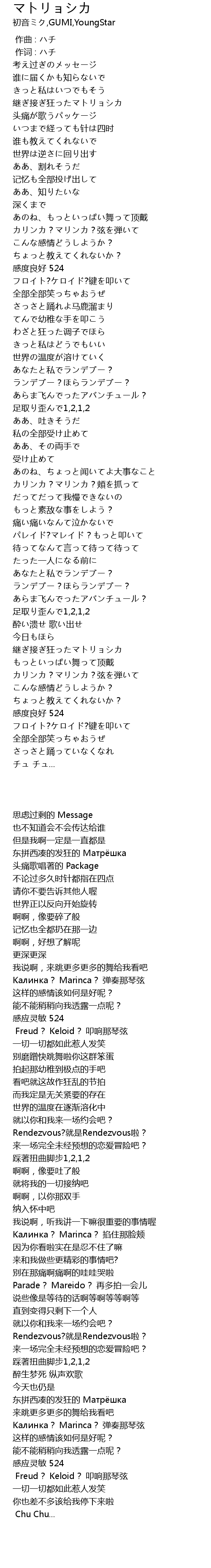 | [02:28.290] | 継ぎ接ぎ狂ったマトリョシカ |