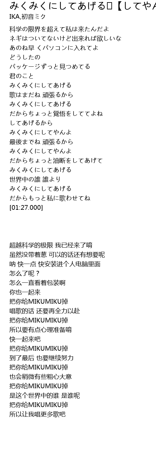 | [00:43.230] | みくみくにしてあげる |