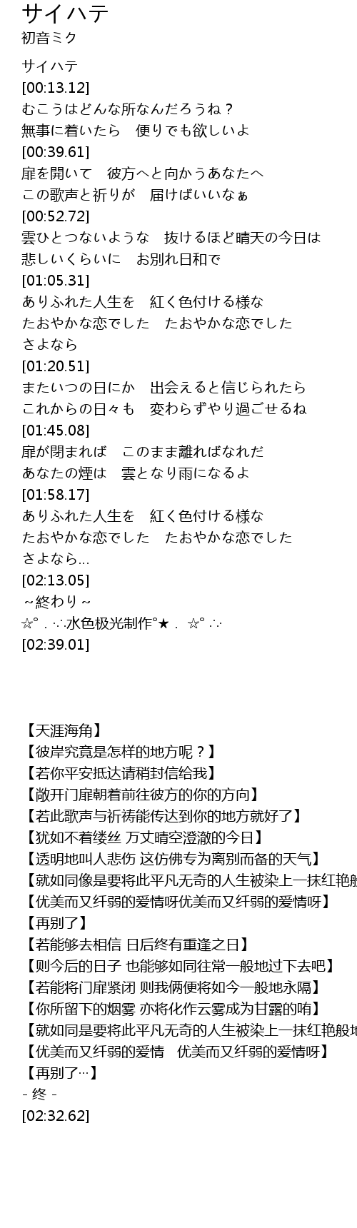 | [00:03.26] | サイハテ |