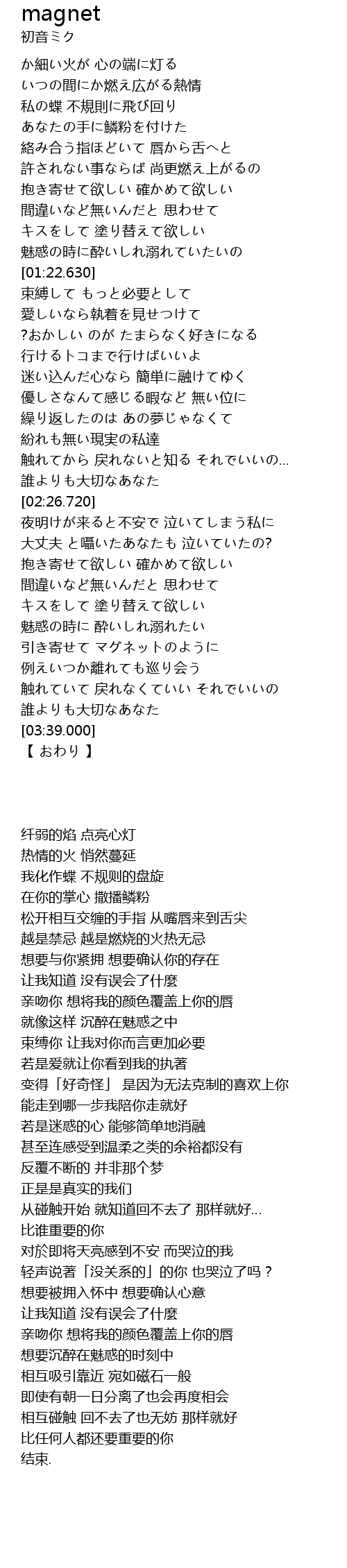 | [03:16.750] | 相互吸引靠近 宛如磁石一般 |