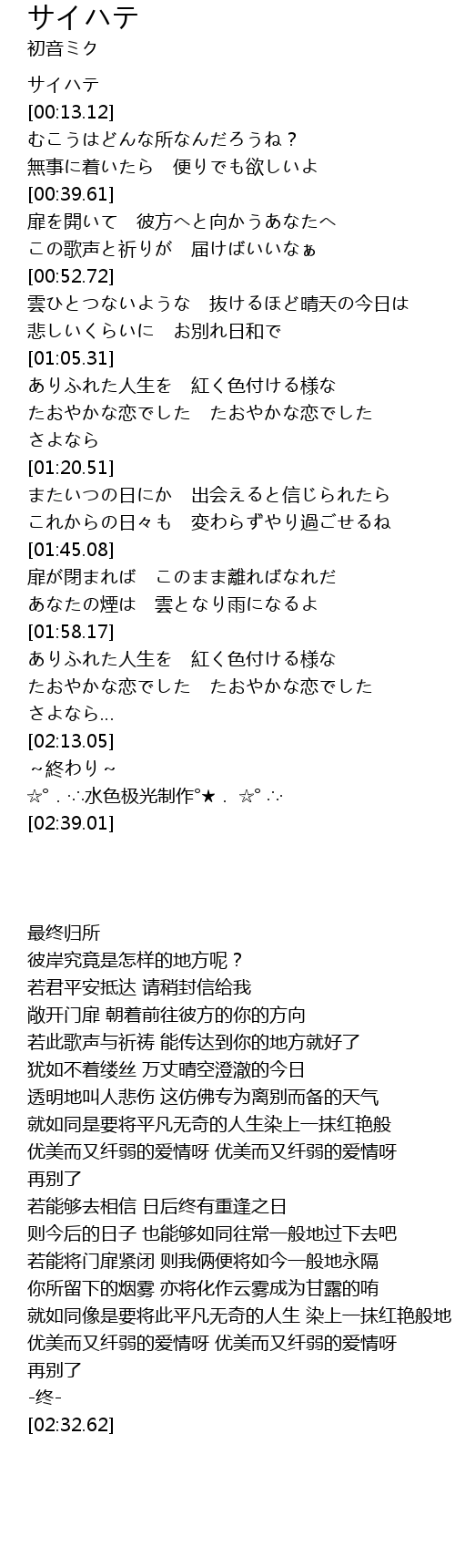| [00:39.82] | 敞开门扉 朝着前往彼方的你的方向 |