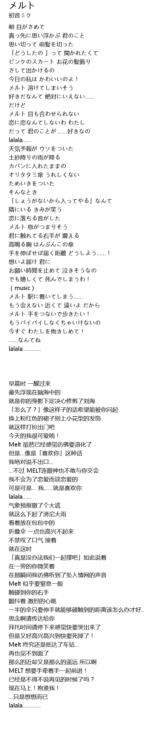 | [01:00.474] | Melt 虽然已经感觉彷佛要溶化了 |