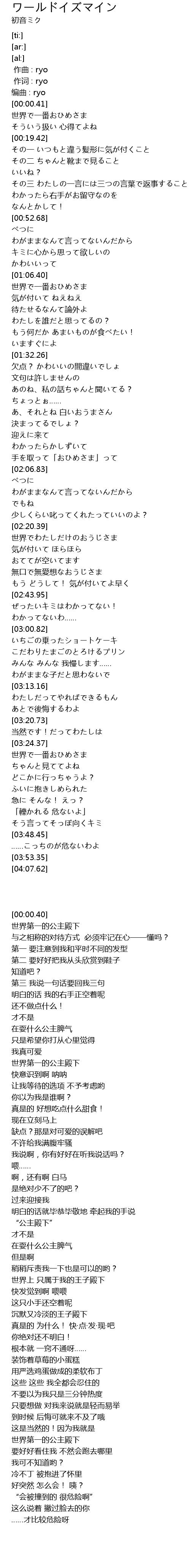 | [02:20.57] | 世界でわたしだけのおうじさま |