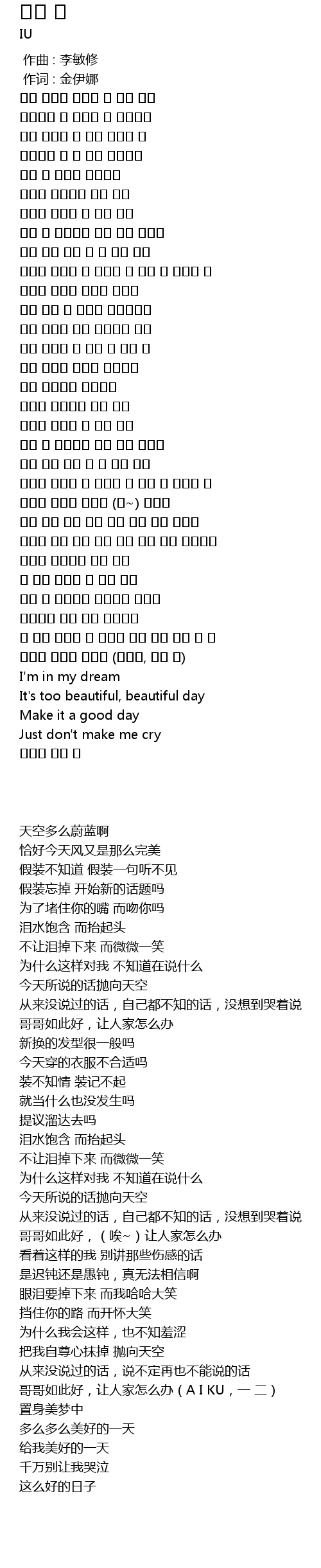 | [00:01.00] | 作词 : 金伊娜 |