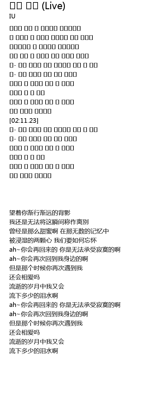 | [02:38.28] | 아- 나의 곁으로 다시 돌아 올거야 |