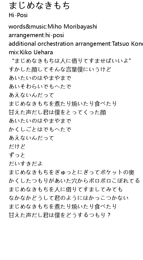 | [02:55.100] | まじめなきもちを煮たり焼いたり食べたり |