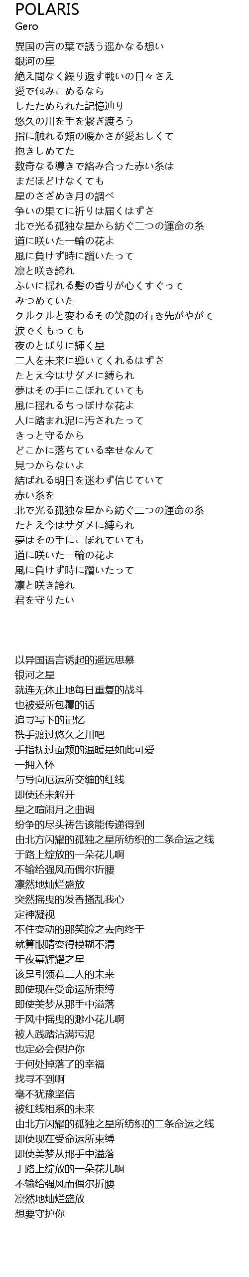 | [03:43.590] | 由北方闪耀的孤独之星所纺织的二条命运之线 |