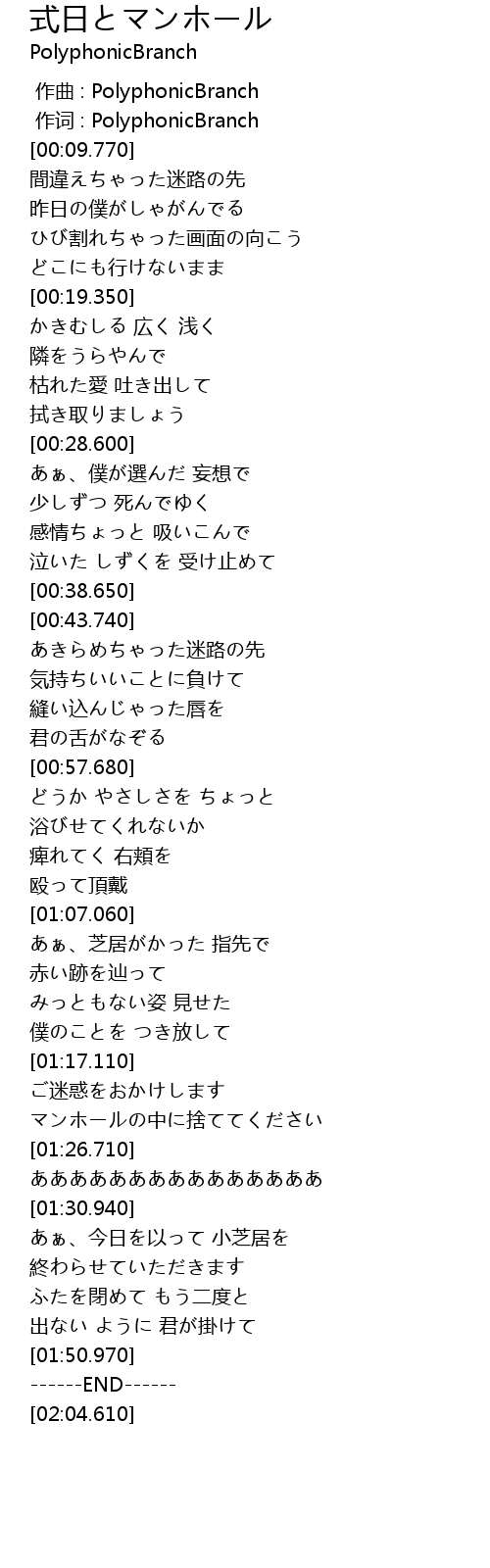 | [00:01.00] | 作词 : PolyphonicBranch |