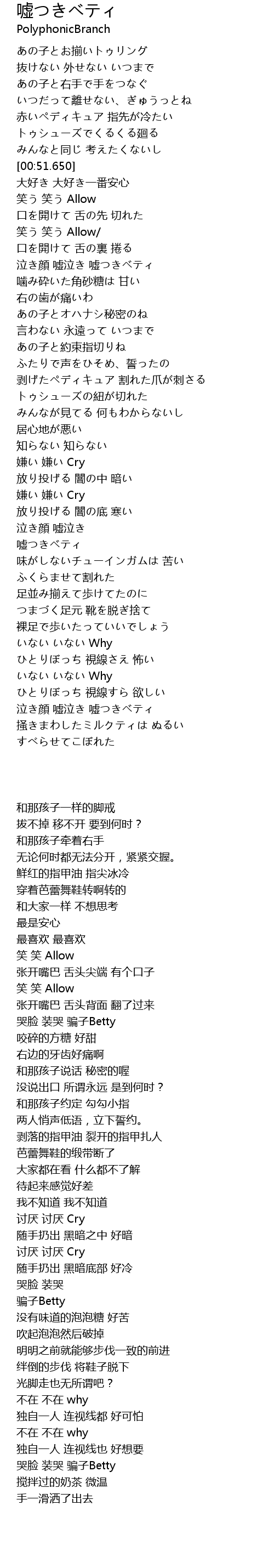 | [02:46.880] | 嘘つきベティ |