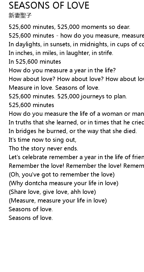 Measure in love. Seasons of love. |