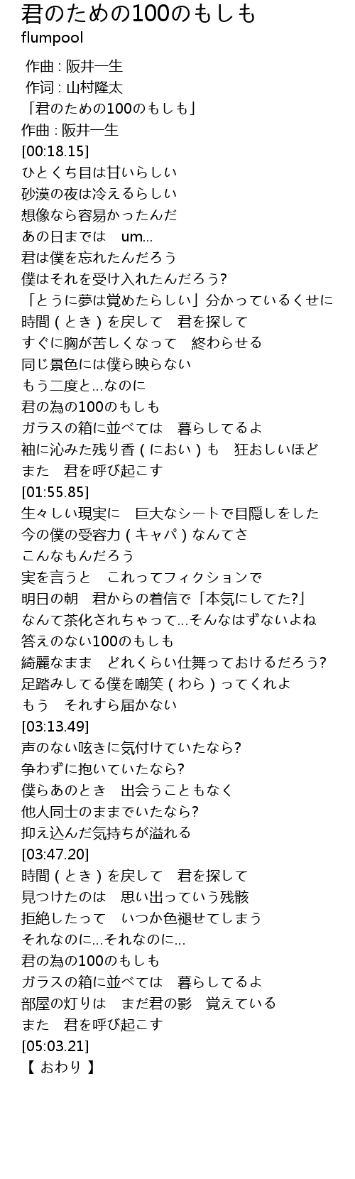 | [02:49.01] | 綺麗なまま どれくらい仕舞っておけるだろう? |