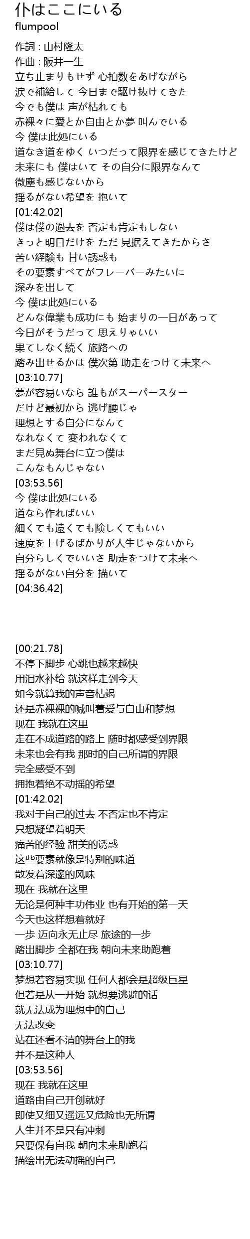 | [01:21.47] | 未来にも 僕はいて その自分に限界なんて |