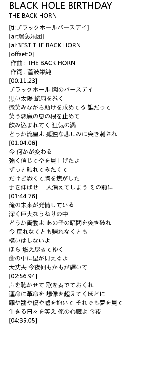 | [ti:ブラックホールバースデイ] | |