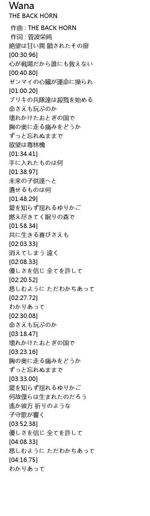 | [00:00.00] | 作曲 : THE BACK HORN |