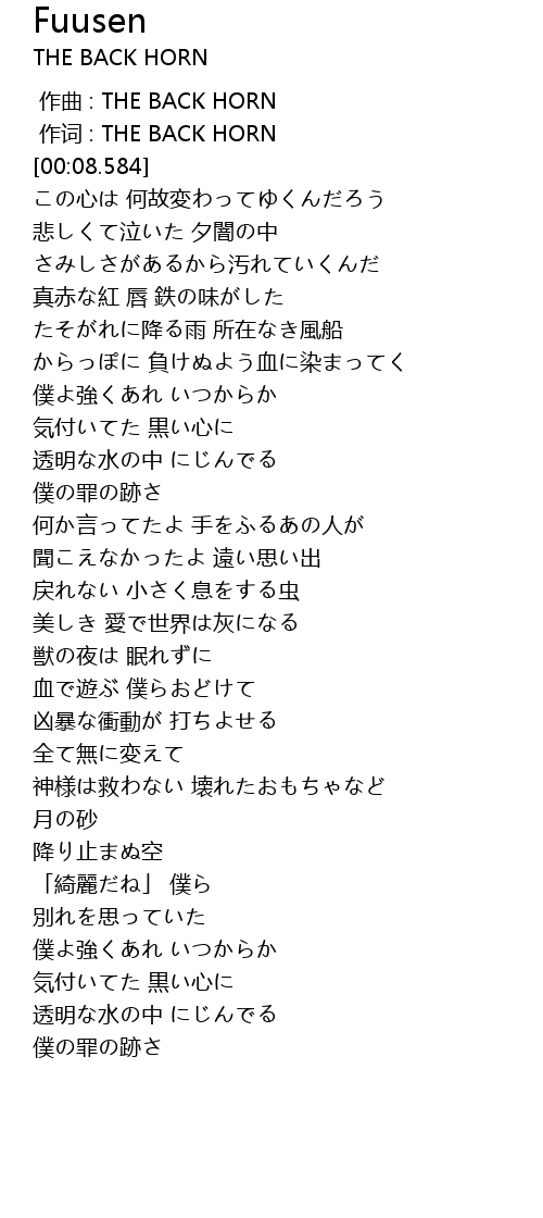 | [00:01.00] | zuò cí : THE BACK HORN |
