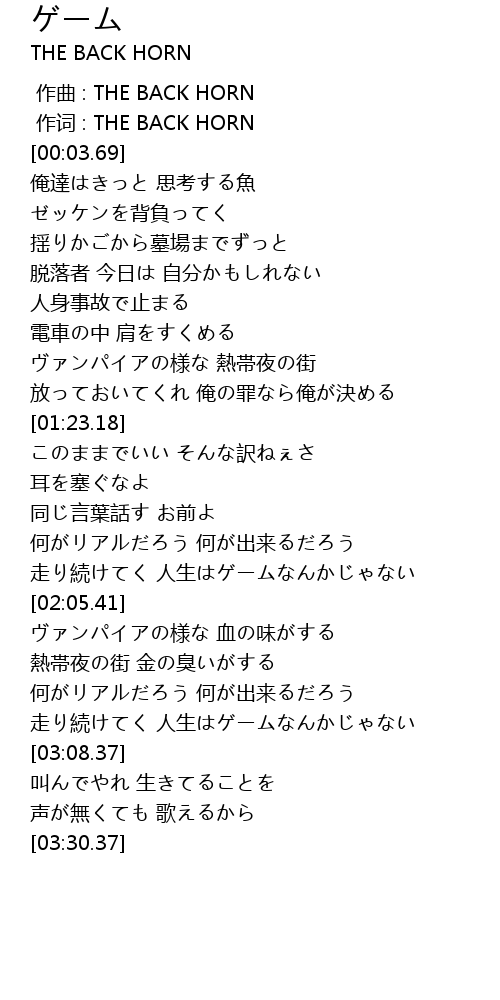 | [02:58.37] | 走り続けてく 人生はゲームなんかじゃない |