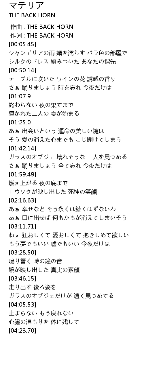| [00:00.00] | 作曲 : THE BACK HORN |