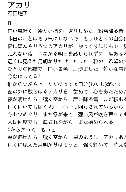 | 雪が溶けたら 续く空から 星のように アカリあふれる | |