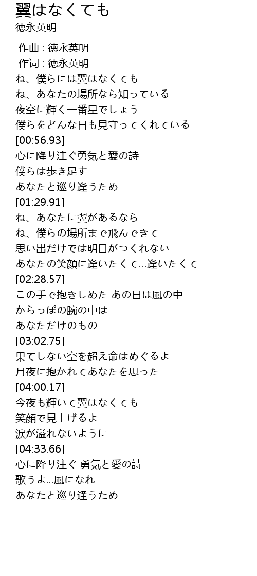 | [01:32.79] | ね、あなたに翼があるなら |