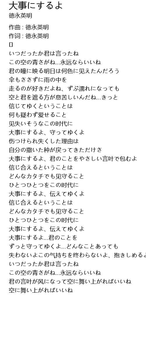 | 大事にするよ、君のことをやさしい言叶で包むよ | |