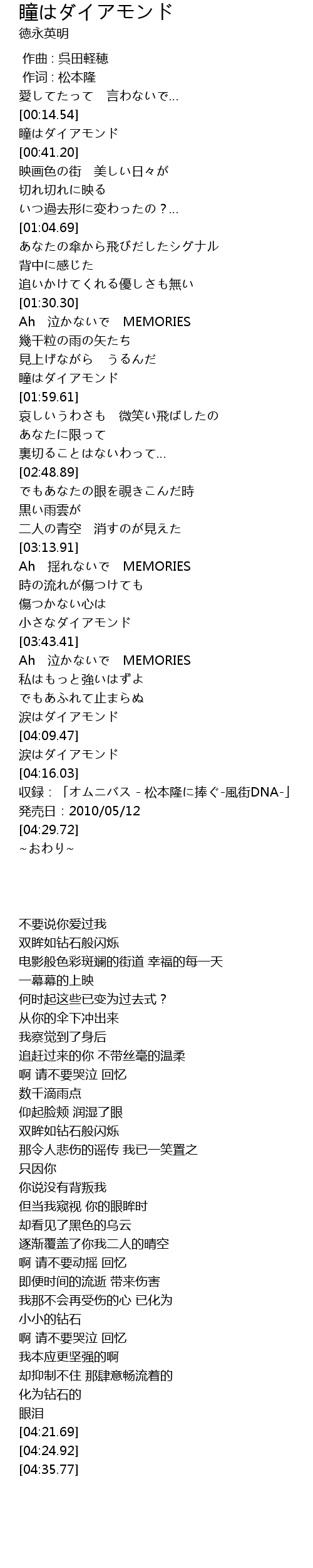| [00:21.68] | 瞳はダイアモンド |