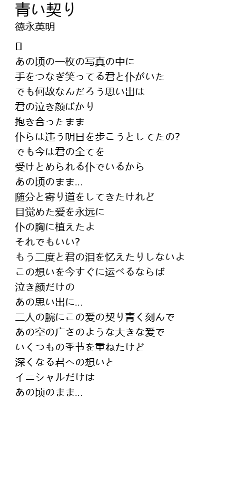 | 二人の腕にこの爱の契り青く刻んで | |