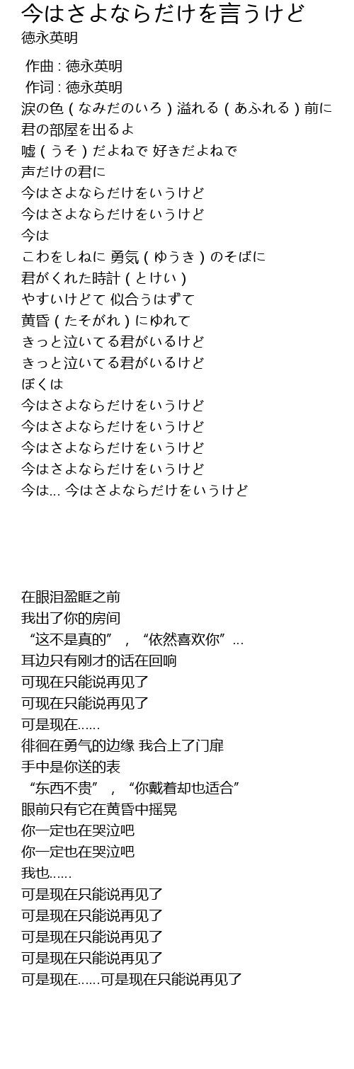 | [03:59.30] | 今は… 今はさよならだけをいうけど |