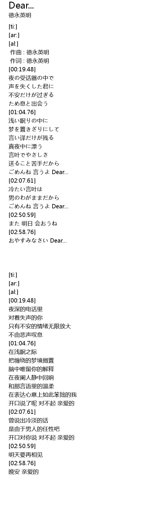 | [01:58.34] | ごめんね 言うよ Dear… |