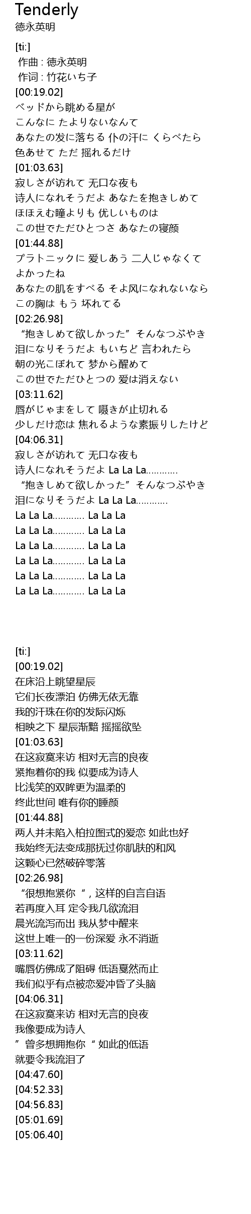 | [04:38.18] | 泪になりそうだよ La La La………… |