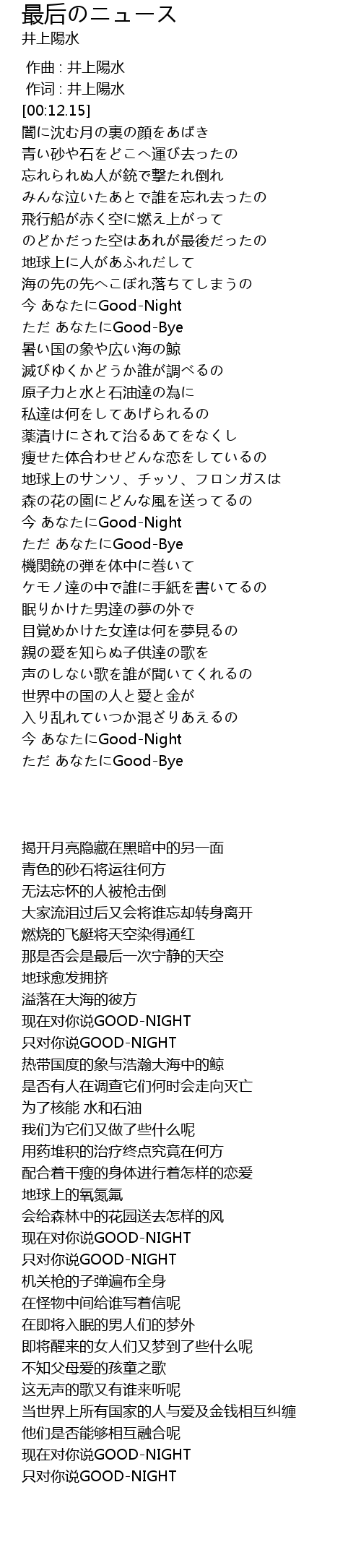 | [04:57.13] | 现在对你说GOOD-NIGHT |