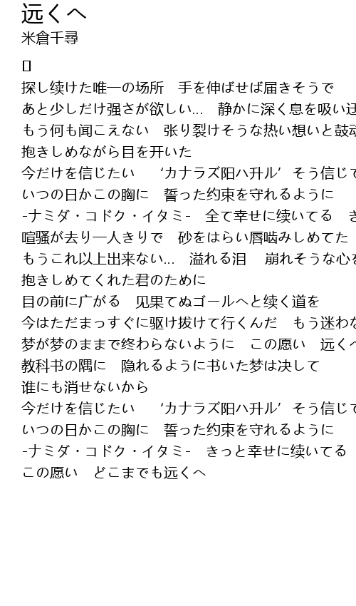 | 梦が梦のままで终わらないように この愿い 远くへ | |
