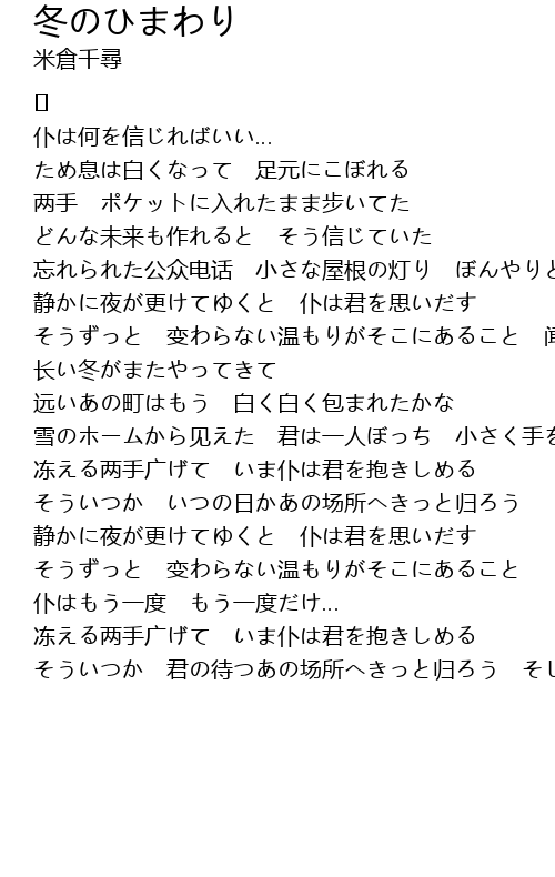 | 雪のホームから见えた 君は一人ぼっち 小さく手を振ってた | |