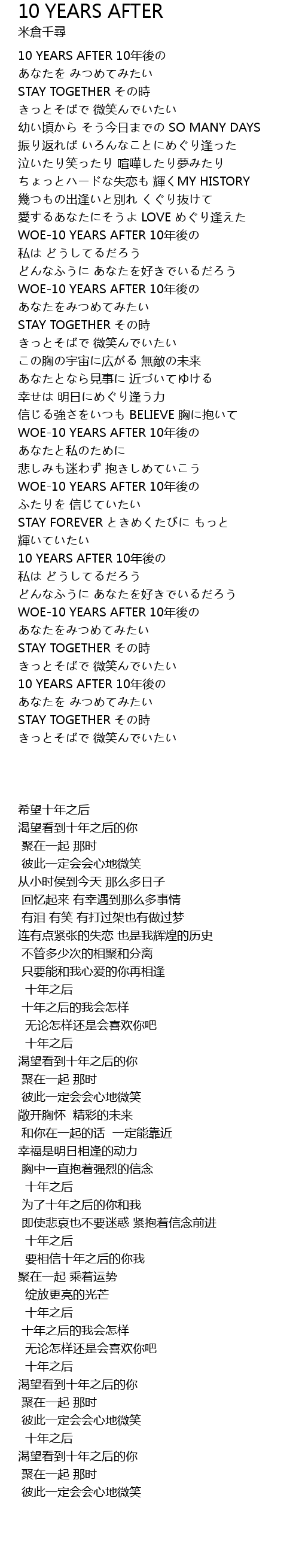 | [03:23.399] | 10 YEARS AFTER 10 nián hòu |