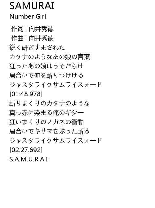 | [02:17.713] | ジャスタライクサムライスォ一ド |
