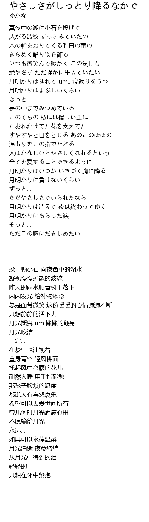 | [01:49.59] | 月明かりはゆれて um.. 寝返りをうつ |
