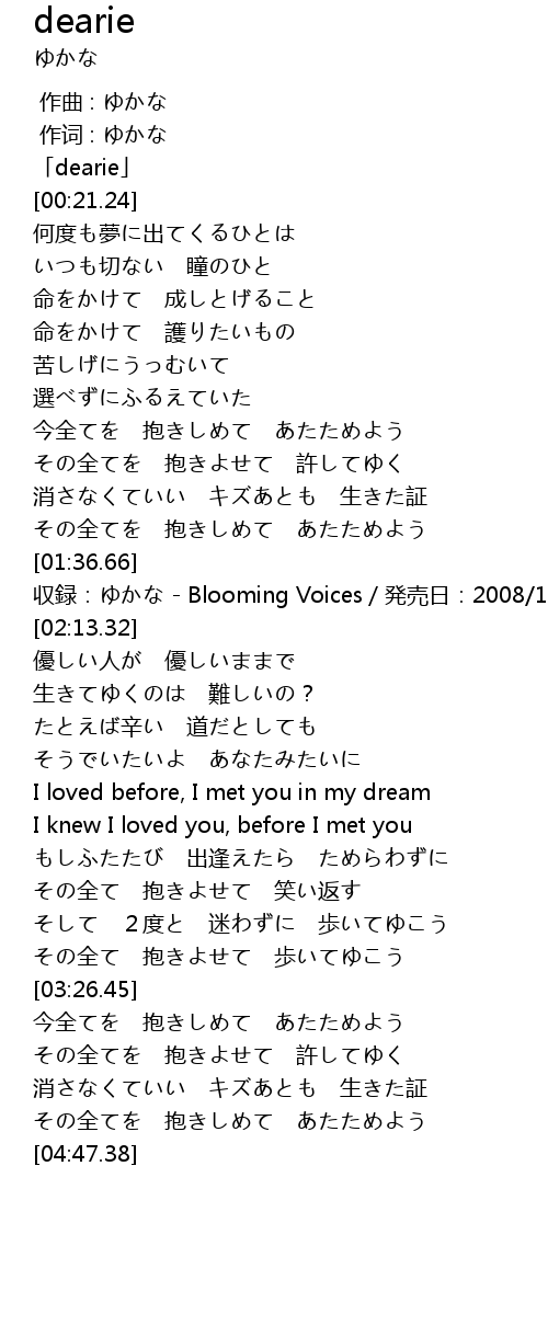 | [01:39.66] | 収録:ゆかな - Blooming Voices/発売日:2008/10/29 |