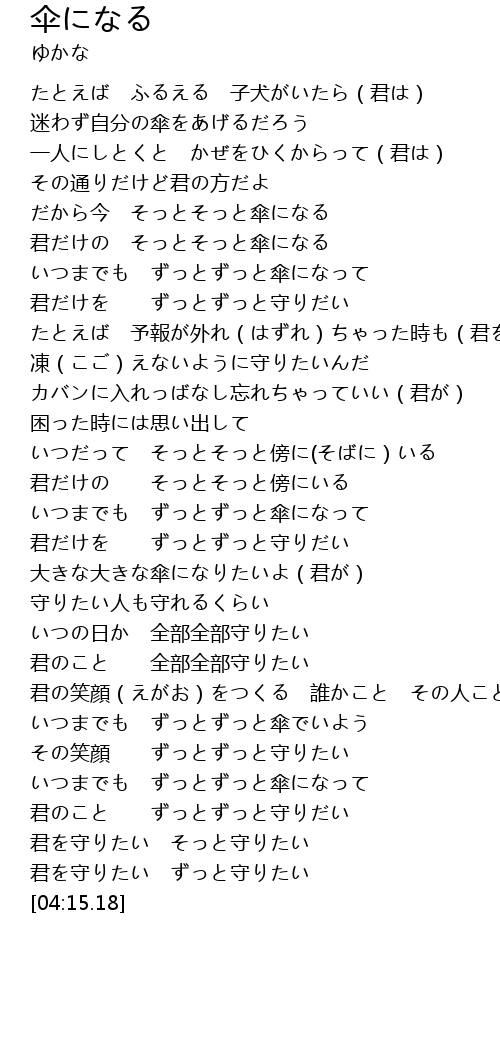 | [00:47.32] | いつまでも ずっとずっと傘になって |