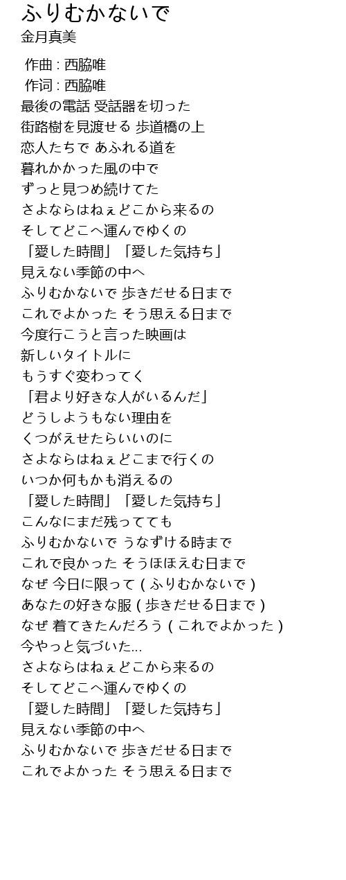 | [01:14.86] | ふりむかないで 歩きだせる日まで |