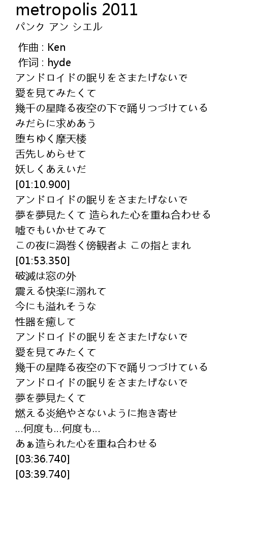 | [03:01.590] | アンドロイドの眠りをさまたげないで |