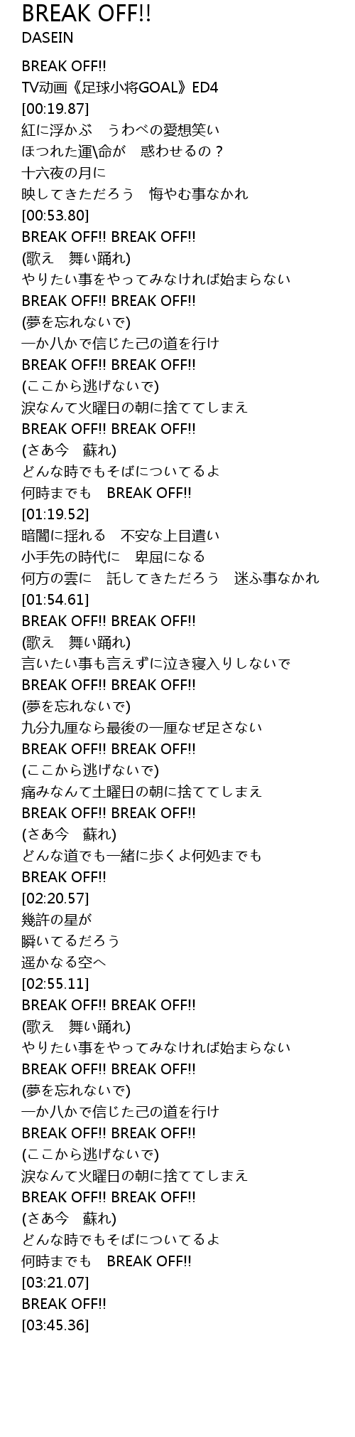 | [03:19.17] | 何時までも BREAK OFF!! |
