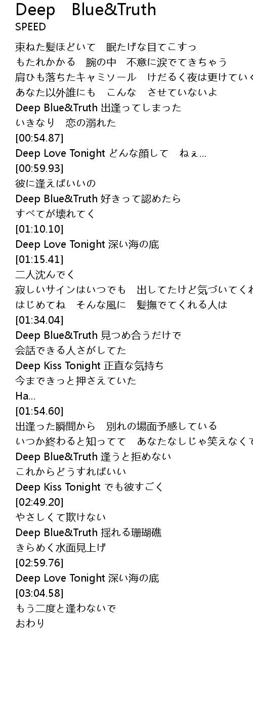| [02:37.48] | Deep Blue&Truth 逢うと拒めない |