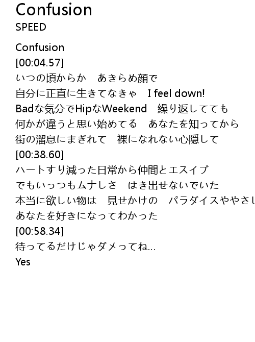 | [00:20.67] | 自分に正直に生きてなきゃ I feel down! |