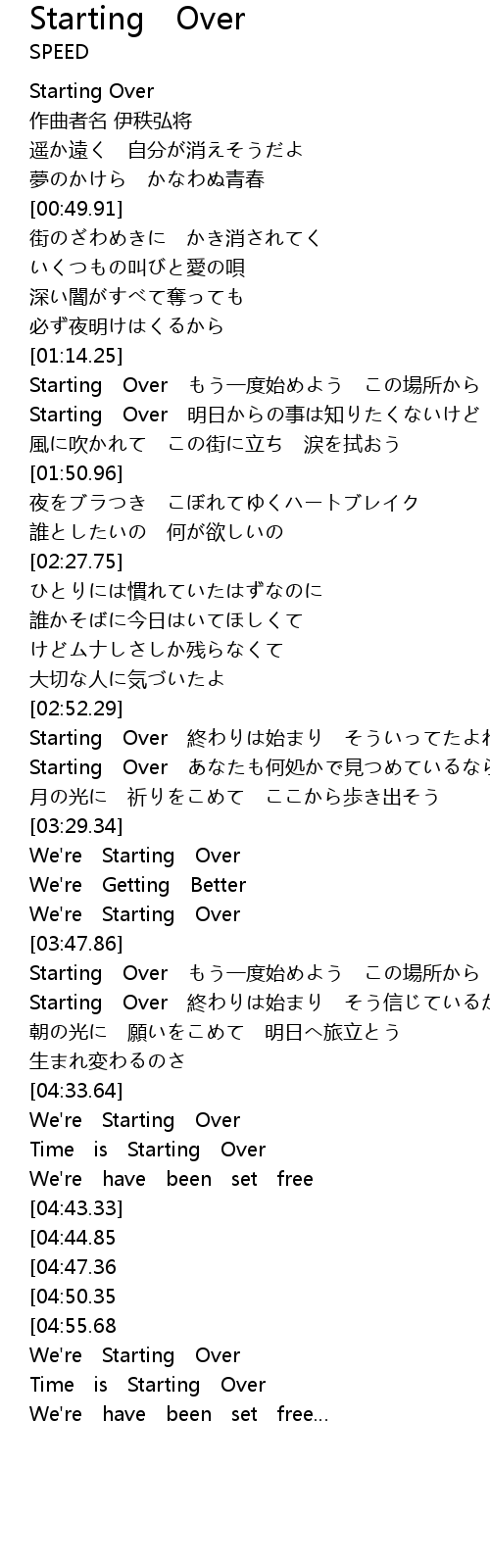 | [03:53.78] | Starting Over もう一度始めよう この場所から |