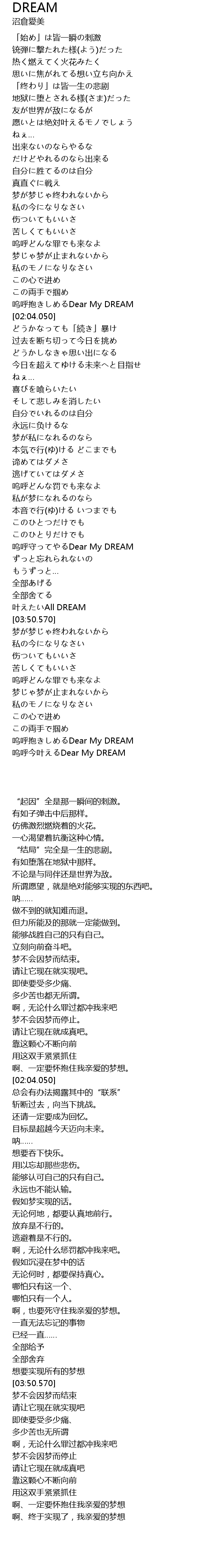 | [04:31.580] | 呜呼抱きしめるDear My DREAM |