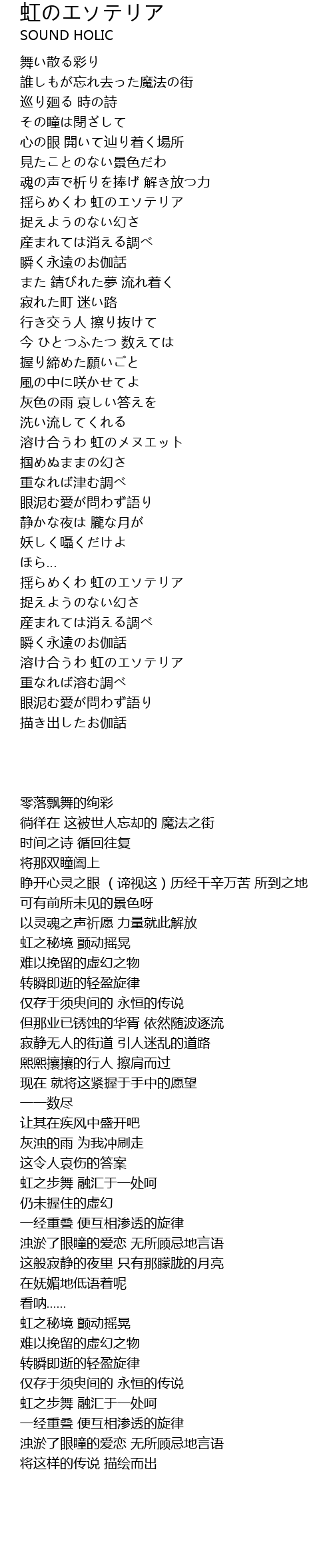 | [04:03.18] | 揺らめくわ 虹のエソテリア |