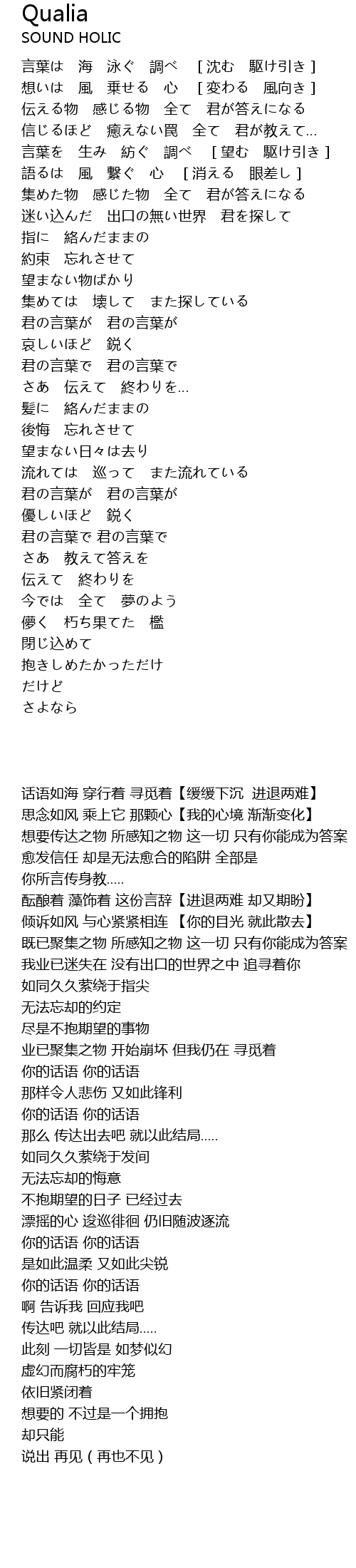| 歌曲 | Qualia |