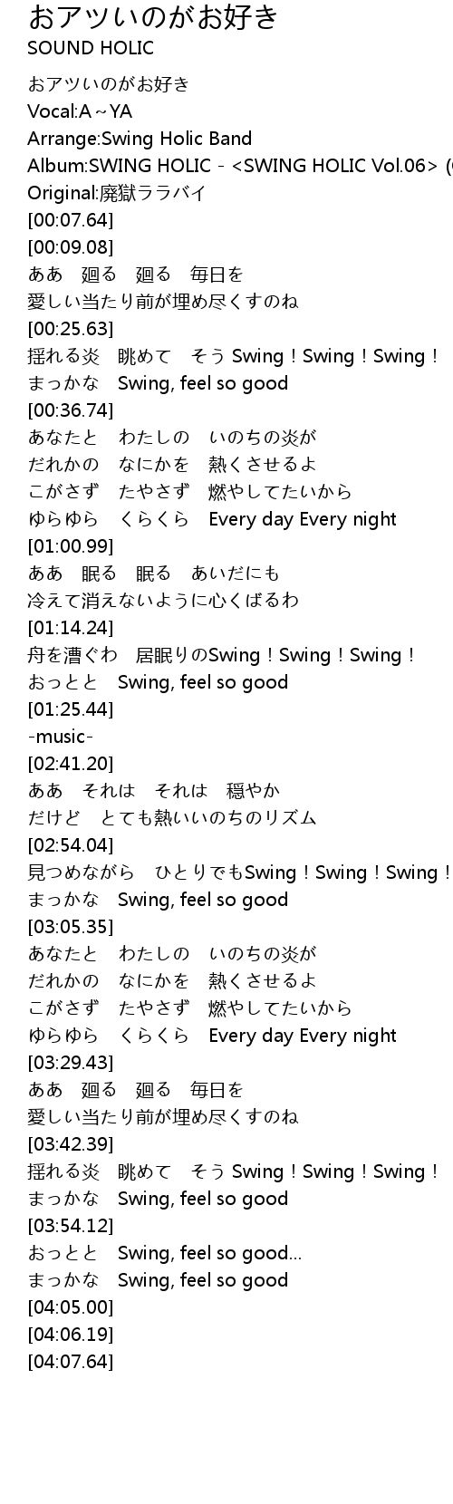 | [00:04.75] | Album: SWING HOLIC SWING HOLIC Vol. 06 C79 |